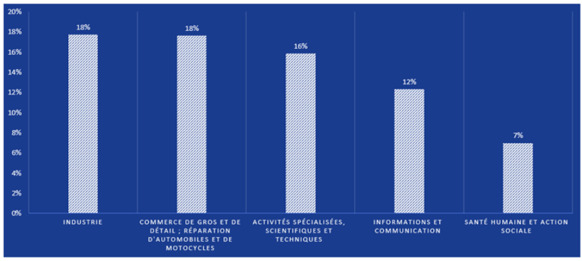 Or, nos chiffres démontrent que les conséquences d’une cyberattaque peuvent être extrêmement graves. Ainsi, un cyberincident, tel que la manipulation de la température des unités de réfrigération ou le cryptage du système de commande, peut entraîner des temps d’arrêt et donc des pertes d’exploitation. Les entreprises de l’industrie (entreprises de production alimentaire) et commerciales (par exemple, les supermarchés) sont déjà très représentées au sein de notre portefeuille à l’heure actuelle (voir graphique).